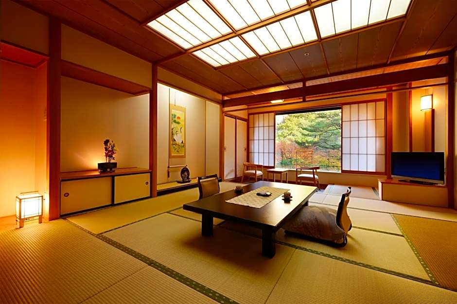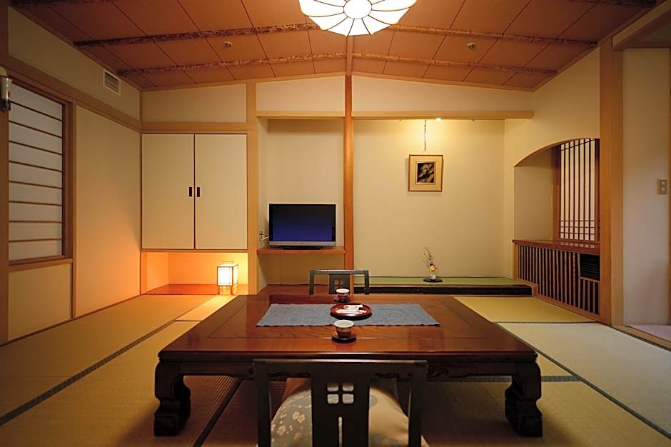 Fitted with tatami (woven-straw) flooring and traditional futon bedding, this spacious room comes with a flat-screen TV, air conditioning and a fridge. The private bathroom has a bath tub and towels.